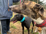 Viele Interessenten, die sich zum ersten, evtl. zum zweiten Mal mit dem Gedanken tragen, einen Greyhound bei sich aufzunehmen, haben sehr konkrete Farbvorstellungen. "Blau" wäre perfekt - sie gehen von der irrigen Annahme aus, Grey... käme von der Farbe grau, helle Farben wären ebenfalls wünschenswert, auf gar keinen Fall aber darf es ein schwarzer Greyhound sein (Ausnahmen hiervon sind ehemalige Dobermann- bzw. Rottweilerbesitzer).
